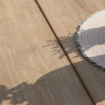 Shiro Brushed Light Acacia Garden Dining Table – Dove Grey Concrete