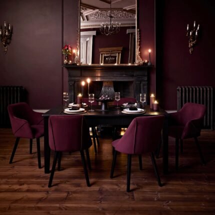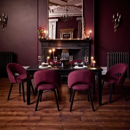Buyer’s Notes New for AW25, the beautiful burgundy velvet Freya dining room chair is the perfect addition to any classic