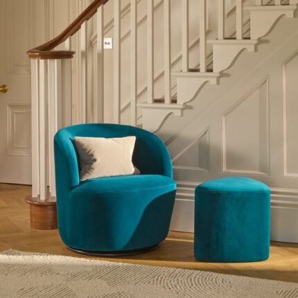 Sawyer 68cm Swivel Armchair & Alder 45cm Footstool – Deep Teal