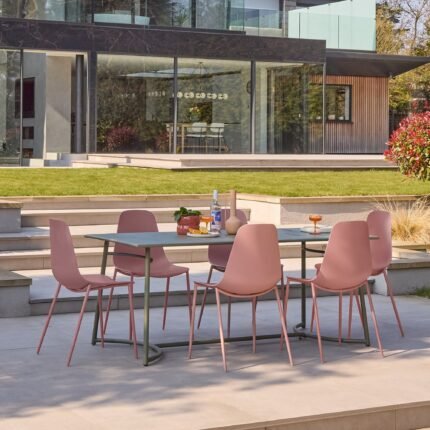 Wilder 6 Seater Metal Garden Dining Set with Wren Pink Chairs