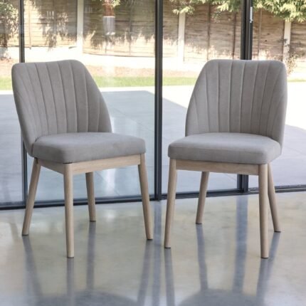 Outlet – Chloe Soft Beige Dining Chairs – Set of 2 – Whitewash Oak Legs