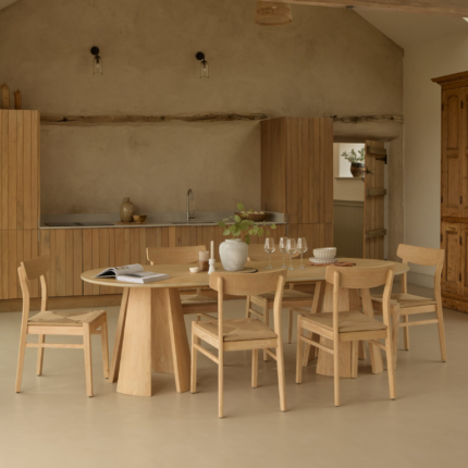 Farren Whitewash Oval Dining Table Set – 6 Seater – Faye Dining Chairs – Whitewash Oak Legs