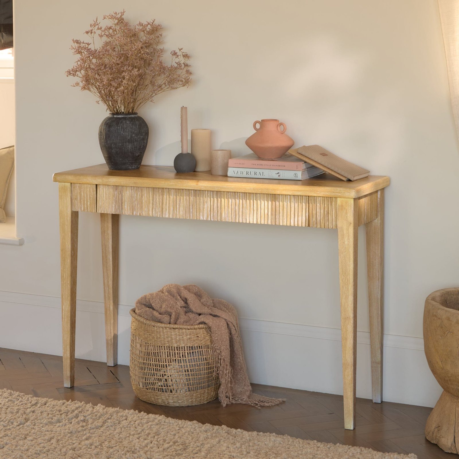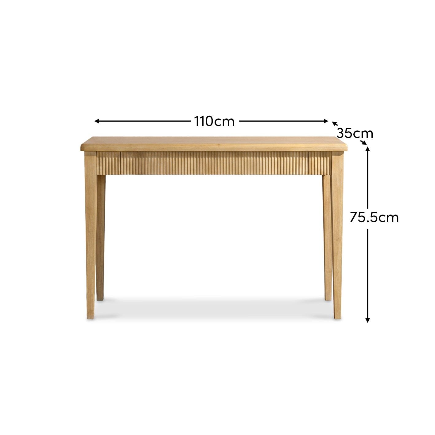 - Design features – 110cm console table with soft close drawer and fluted edge detail.