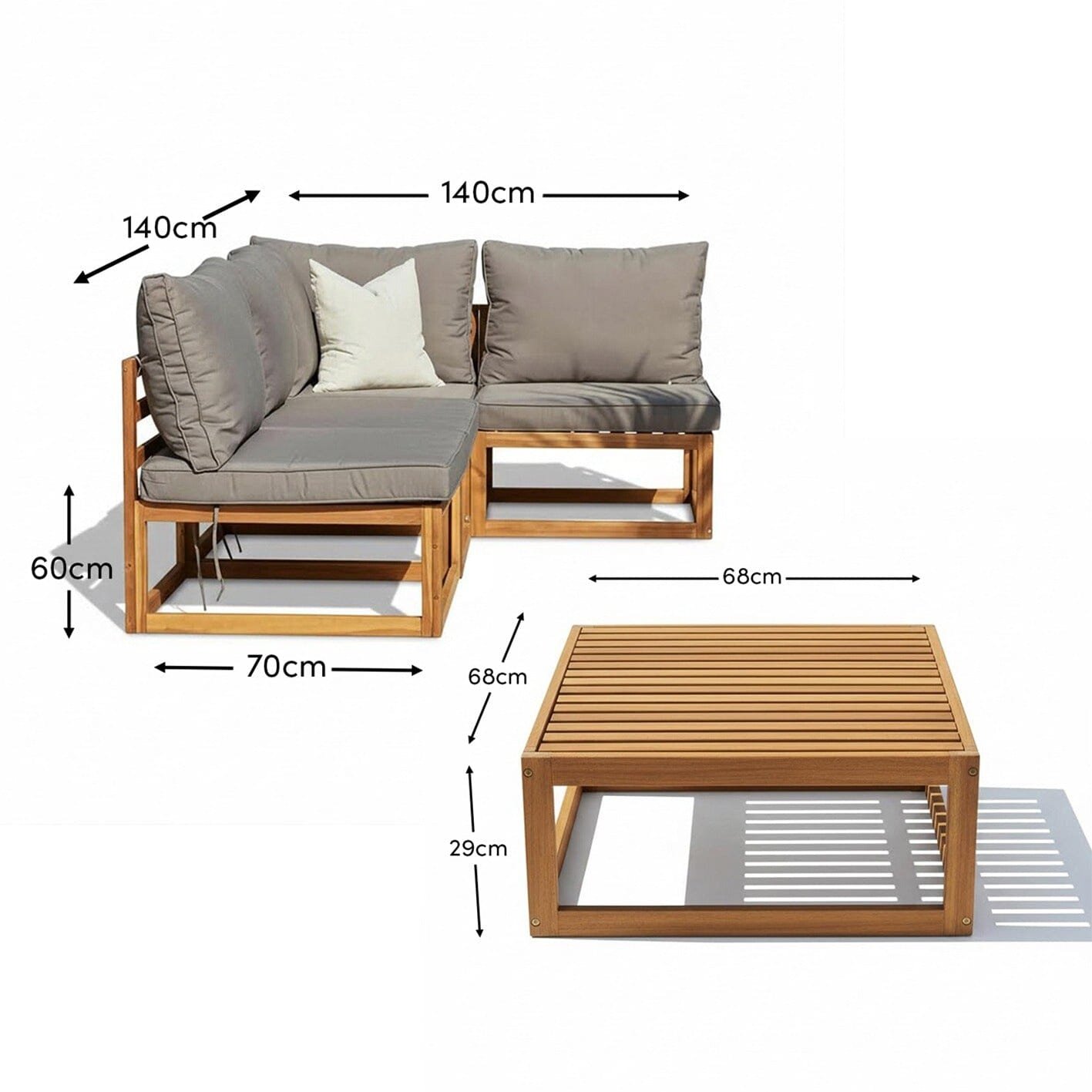 • What’s included – Rowan 3 seater wooden garden corner sofa & coffee table in grey.