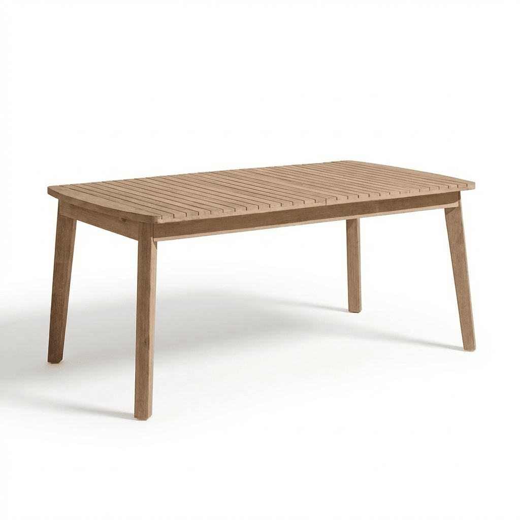- Table design features – Rectangular table with slatted tabletop and extending function.