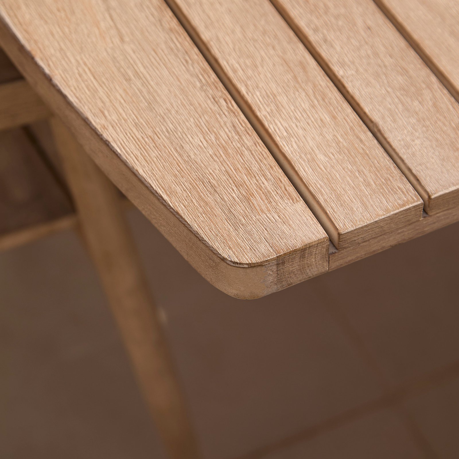 The Saffron dining rectangular dining table is crafted from light brushed acacia wood for a premium look and features a slatted table top, slightly rounded edges and classic table legs. The table features a practical extending function to create more space for entertaining.