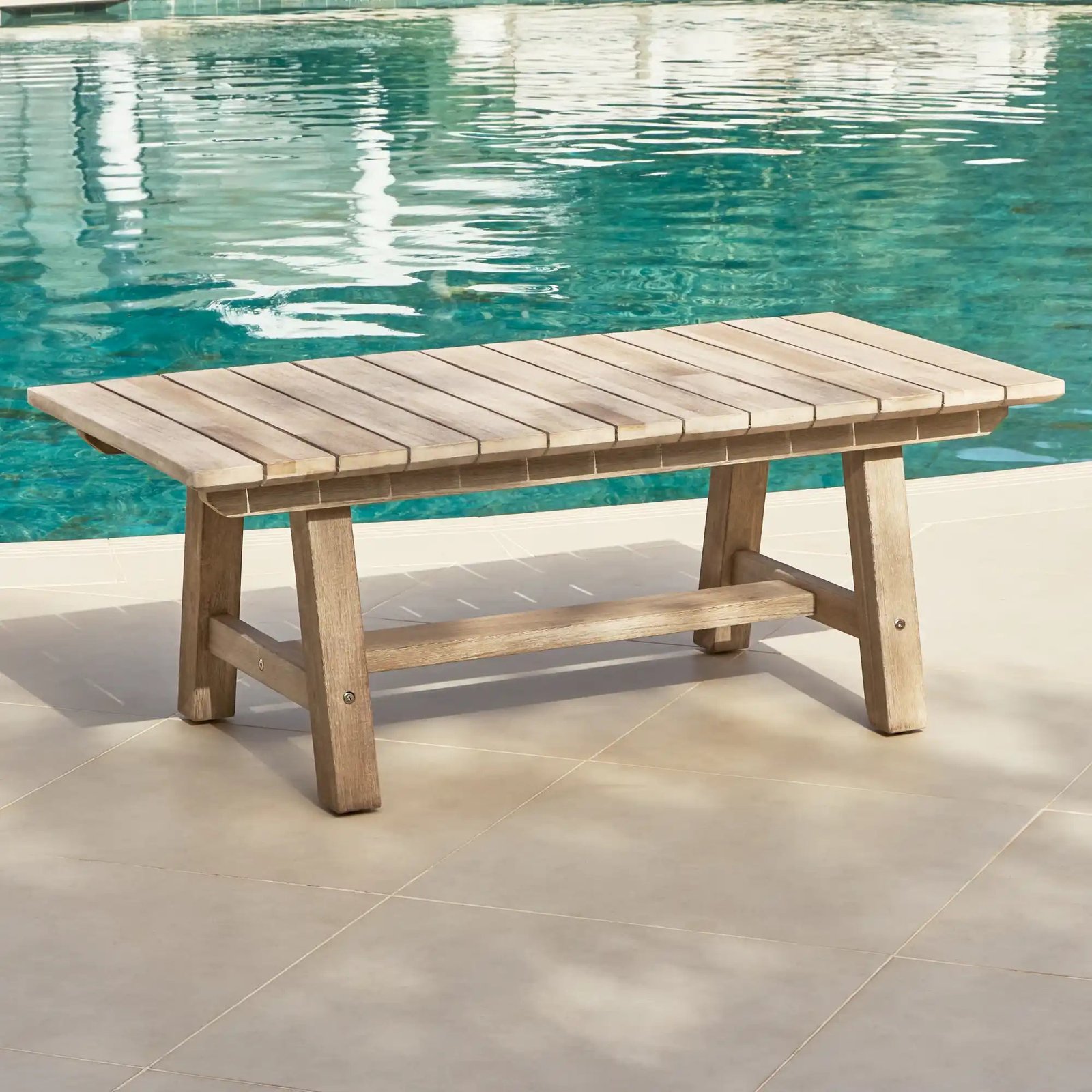 • Design features – Rectangular design, light brushed acacia wood with slatted tabletop.