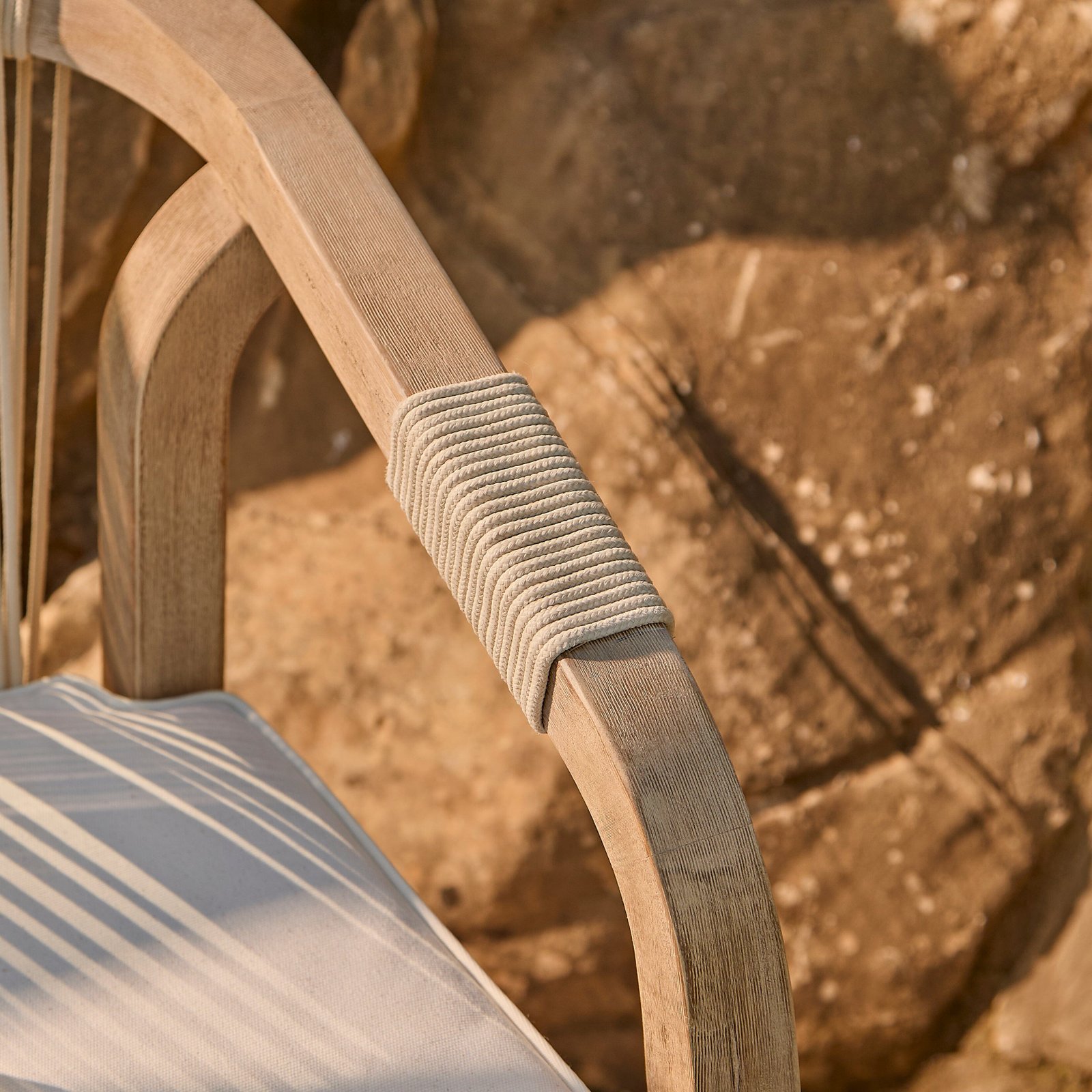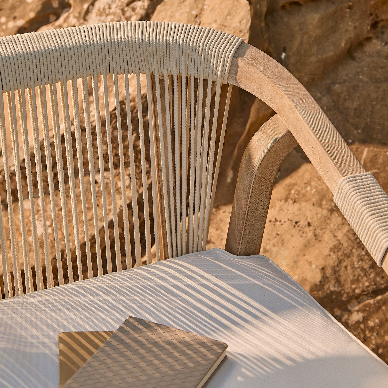 The Shiro bench is a stylish and contemporary addition to your garden and outdoor living areas this season. Made from brushed light acacia wood the bench features a beige rope design bringing a modern look to your outdoor space.