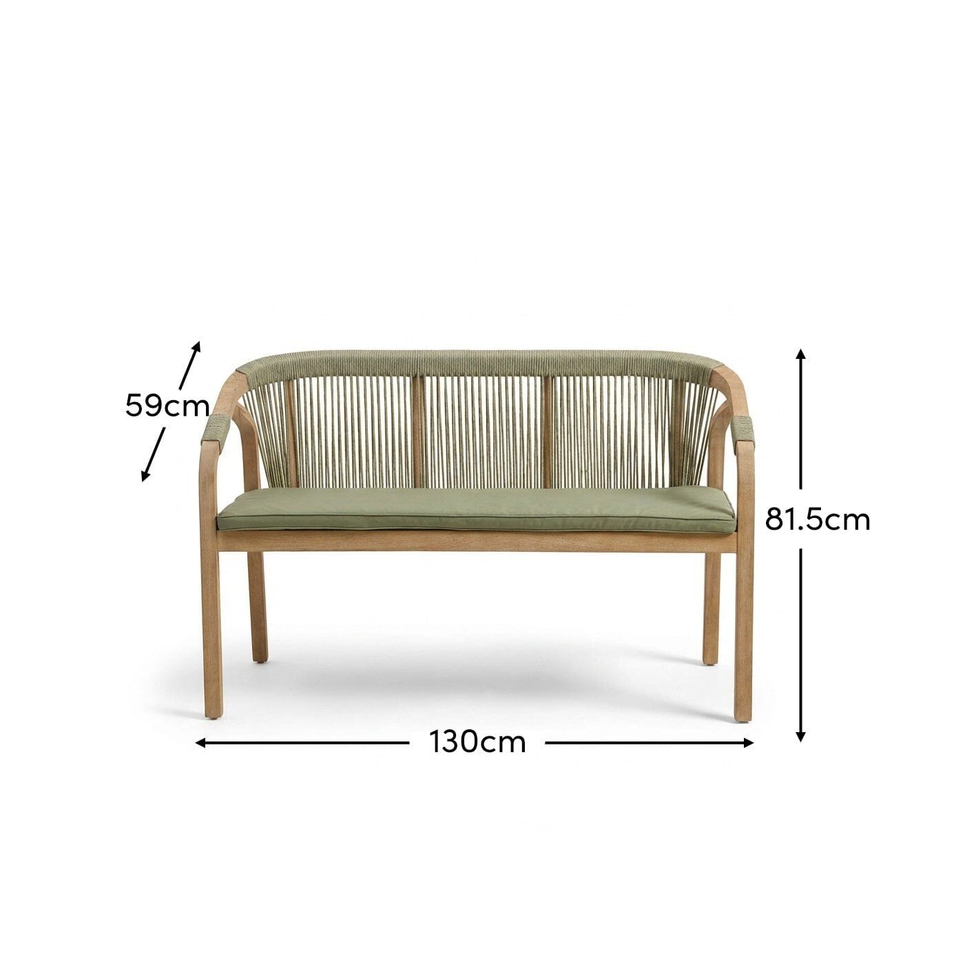 The Shiro bench is a stylish and contemporary addition to your garden and outdoor living areas this season. Made from brushed light acacia wood the bench features a green rope design bringing a modern look to your outdoor space.