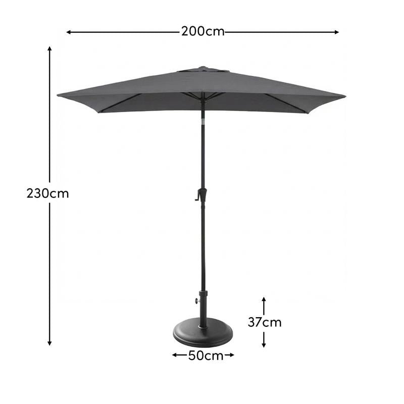 - What’s included – Square 2m parasol in grey with 25kg parasol base.