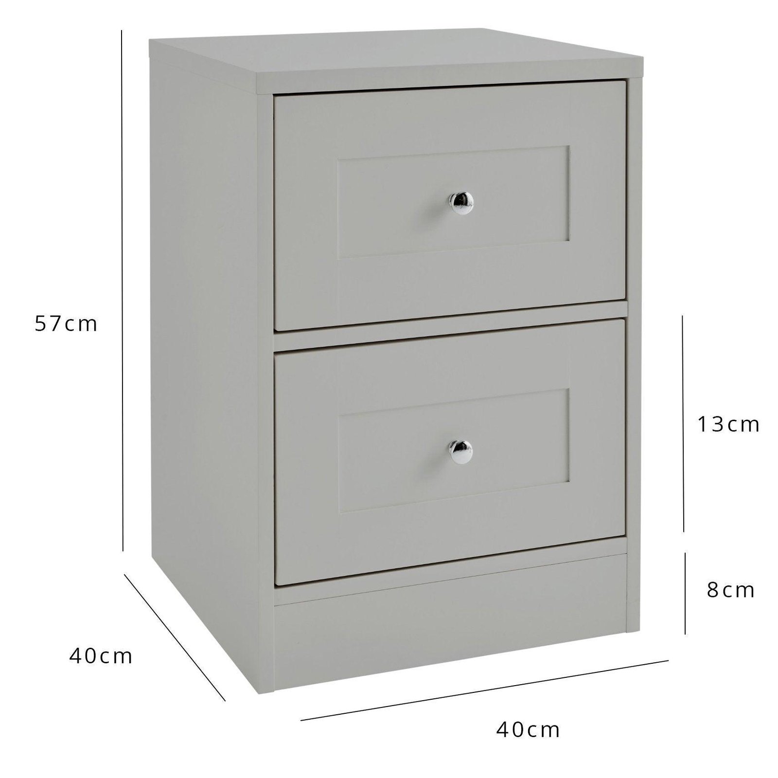 A shaker style bedside table brings a soft element of class and elegance to your bedroom. Our Stevie grey two drawer bedside table features stunning inlay detail and silver handles for a chic finish.