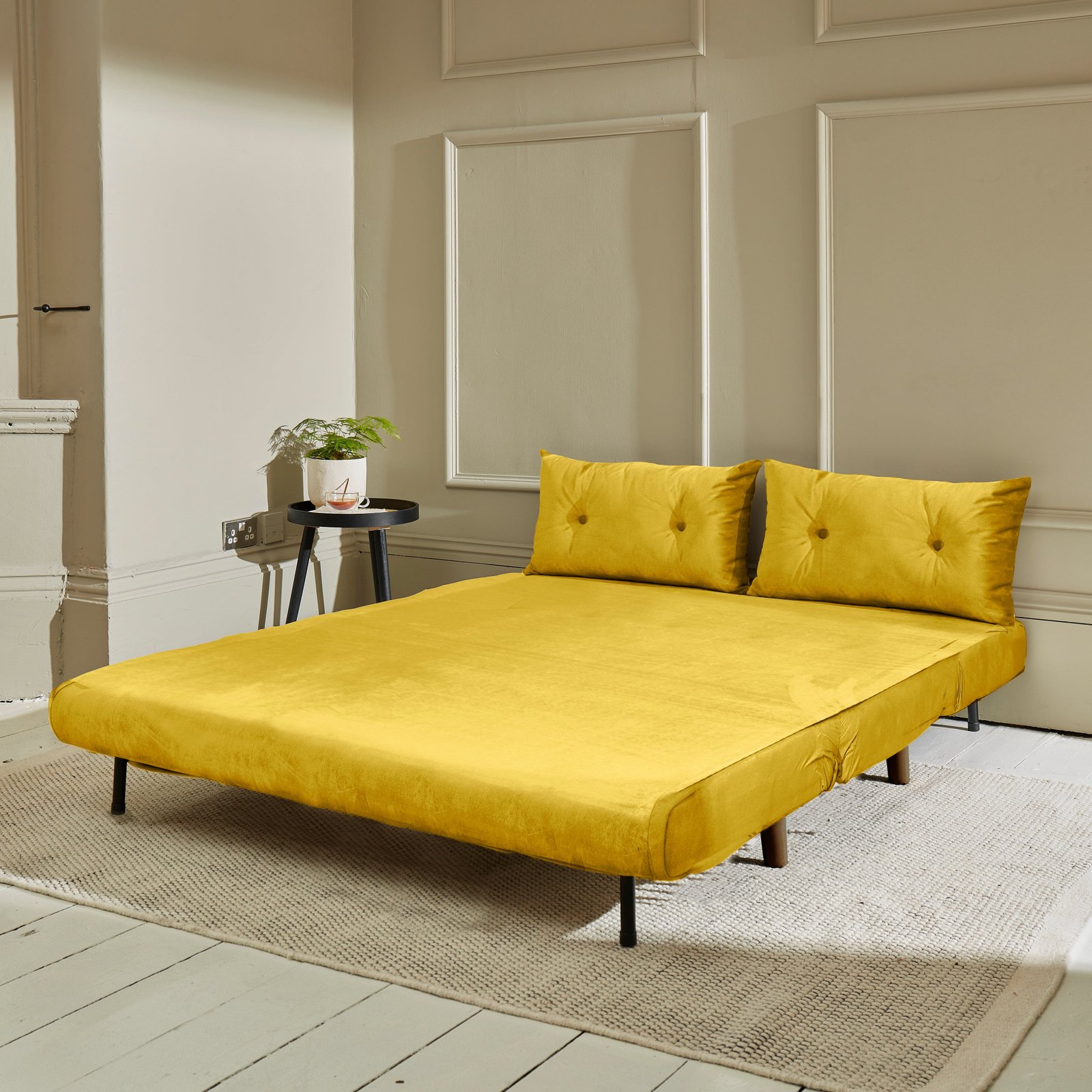 - What’s Included – 1 x Una double sofa bed in yellow velvet and 4 dark oak legs.
