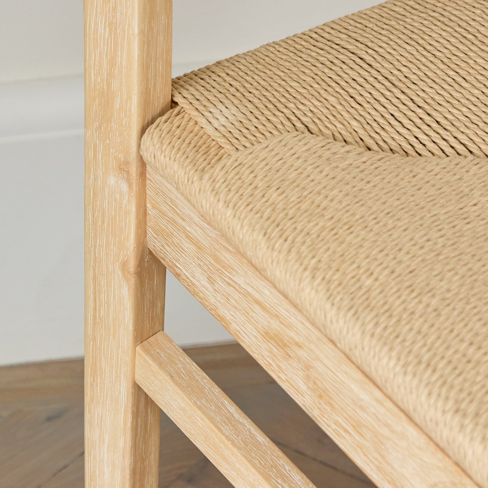 Elevate your dining space with a statement dining set like the Willow and Faye whitewash dining set. The Willow oval dining table features a slatted base at either end of table for a Scandi-inspired look. The table comes with six classic Faye chairs each with a charming woven seat for texture and comfort.